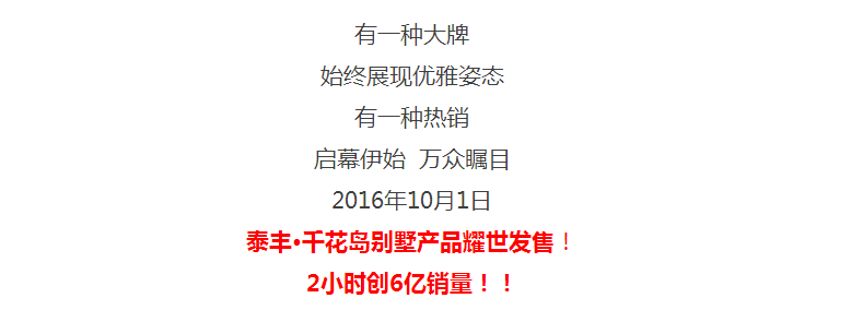 2016年10月1日,備受矚目的泰豐·千花島在千花島營銷中心別墅產(chǎn)品正式公開發(fā)售,深惠兩地的高端置業(yè)者聚集開盤現(xiàn)場,將首批推出的近百套城央高拓島墅在2小時(shí)內(nèi)搶購一空,千花島初次盛放,即創(chuàng)深惠樓市奇跡!