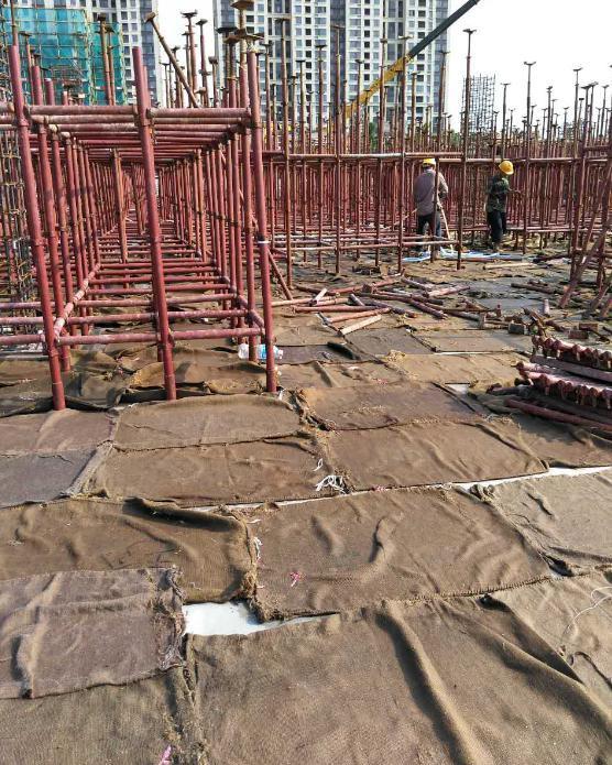 8、主體混凝土結(jié)構(gòu)采用麻袋覆蓋養(yǎng)護(hù),確保混凝土強(qiáng)度;