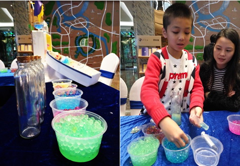 晶瑩剔透的許愿瓶,五彩繽紛的水晶珠,各式各樣的DIY材料,有海螺、貝殼、小魚可以圍合成一個(gè)海洋世界。將寫下愿望的字條裝入瓶中,讓它在幸福的海洋中漂流……