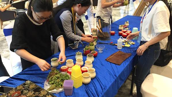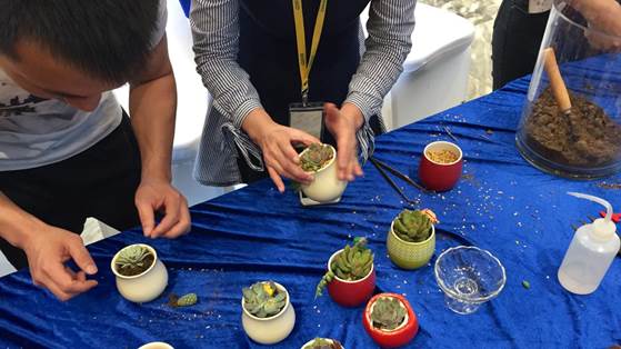 平時忙于工作的參與者,沒有充裕的時間親自動手,看到這些植物早已迫不及待地開始選盆、培土、植株,一派其樂融融。大家紛紛自己現(xiàn)場DIY一盆盆多肉植物,然后帶回家。