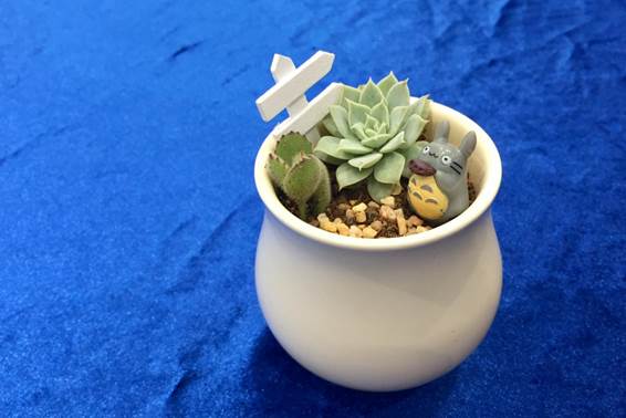 在場有一位特別認(rèn)真的女士,她大功告成的作品猶如一件精致而特別的工藝品,得知是一位幼兒園教師,平時很喜歡一些小清新風(fēng)格的手作和美食。今年剛和先生購買了一座泰豐牧馬湖的別墅,希望在入住后把自家的花園裝飾得美美的,要擺滿自己diy的多肉植物,給孩子營造出更有趣味的花園;自己多制作美食,讓家里天天都充滿朝氣和愛。