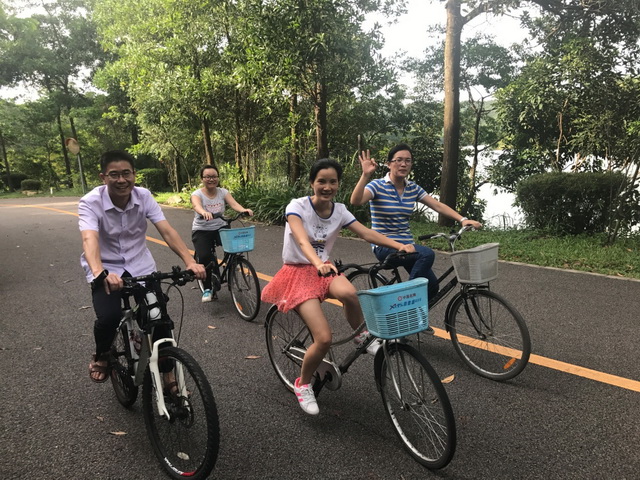 當天下午華威一行自駕出發(fā),到達紅花湖綠蔭騎行道后,各自挑選了騎行裝備,開始騎行。本次騎行為環(huán)湖18公里,途中大家一邊欣賞風景,一邊流著汗賣力踏著單車,興致盎然,并不感到疲倦,反而更散發(fā)出奮發(fā)的朝氣。到達18KM目的地后,湖面佛過的微風撲面而來,令人心曠神怡,更感受到運動后大汗淋漓的快樂。