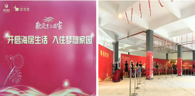 現(xiàn)場(chǎng)包裝處理,細(xì)致入微,清晰的引路標(biāo)識(shí),交房流程沿著道路設(shè)立到交房處,火紅的喜慶標(biāo)貼和橫幅預(yù)示著團(tuán)圓的氛圍。