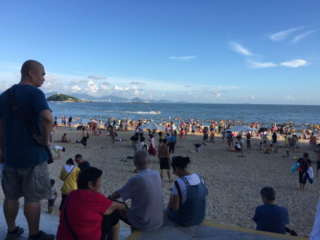 周邊客房全部爆滿,游人如織;藍(lán)天白云里海風(fēng)輕撫每一張燦爛的笑臉,快樂像海浪一樣,此起彼伏,一浪高過一浪;波光粼粼,熱辣無限!