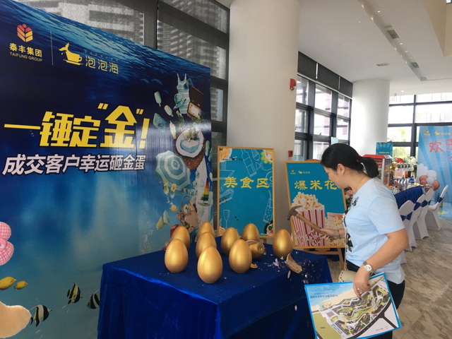 節(jié)日期間泡泡海銷售同樣火爆,成交客戶砸金蛋,中介帶客抽紅包。