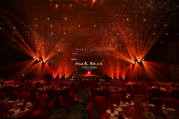 伴隨著耀目的燈光秀以及10位領(lǐng)導的推桿儀式,2018年泰豐年度盛典正式啟動?!苞棑糸L空,翱翔于天地,奮起于懸崖云土之間。厚積薄發(fā),承載夢想,無畏前方險阻,直面未來...”會場話畫外音剛落,一只雄鷹從大屏中沖出,展翅環(huán)繞會場一周為此次盛典拉開了華麗的序幕。